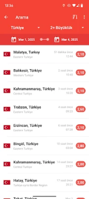 Deprem Uyarılarım, sadece anlık olayları değil, geçmişin sismik verilerini de parmaklarınızın ucuna getirir. 1970 yılına kadar uzanan güçlü arama özelliği ile yarım asırlık deprem kayıtlarını kolayca keşfedebilirsiniz. Şık ve sezgisel bir arayüzle tasarlanmış bu deneyimde, tüm sismik hareketleri hem interaktif bir harita üzerinde görselleştirebilir hem de düzenli bir listede sıralı olarak görebilirsiniz. Her bir depremin tam konumunu, yeryüzünden derinliğini ve bulunduğunuz noktaya olan uzaklığını öğrenerek, durum hakkında eksiksiz bilgiye ulaşırsınız.