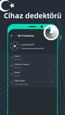 Wi-Fi deneyiminizi bir üst seviyeye taşımak için güçlü bir Wi-Fi analizörü de parmaklarınızın ucunda. SpeedTest Master, kablosuz sinyal gücünüzü değerlendirerek ev veya ofisinizdeki en optimum sinyal noktalarını keşfetmenize yardımcı olur. Ayrıca, ağınıza izinsiz bağlanan cihazları tespit ederek güvenliğinizi sağlamanıza olanak tanır ve Wi-Fi kanal analizi ile daha az yoğunluktaki kanalları bularak kesintisiz bir bağlantı sunar. Detaylı grafiklerle bağlantınızın performansını gerçek zamanlı izleyin ve tüm test sonuçlarınızı kalıcı olarak kaydederek zaman içindeki ağ performansınızı kolayca gözden geçirin.