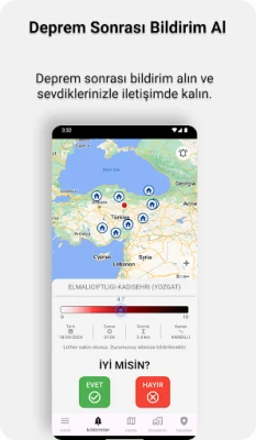 Binamod, sizi, ailenizi ve binalarınızı depreme kapsamlı bir şekilde hazırlar. Anlık deprem bildirimleri, bölgesel tehlike analizi ve bina risk değerlendirme özellikleriyle donatılmıştır. Deprem sonrası sevdiklerinizin durumunu takip edin, buluşma noktaları belirleyin ve bina hasarını bildirin. Güvenliğiniz için her detayı düşünür.