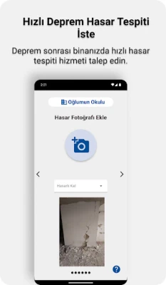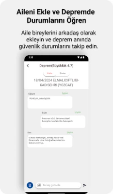 Sarsıntı sonrası anlarda sevdiklerinizle iletişim kurmak Binamod ile hiç bu kadar kolay olmamıştı. Ailenizi, arkadaşlarınızı ve çalışma arkadaşlarınızı güvenli listenize ekleyerek onların durumlarını hızla öğrenin. Olası iletişim kesintileri için önceden belirlenmiş buluşma noktaları ekleyerek belirsizliği ortadan kaldırın. Hatta binanızın hasar durumunu hızlıca değerlendirmek amacıyla fotoğraflar göndererek ilk bilgileri paylaşabilir, durumu hızla rapor edebilirsiniz.