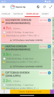 Deprem Ağı, depremlerde en kapsamlı deneyimi sunan özel bir uygulamadır. Dünyanın birçok ülkesinde sismik dalgalar size ulaşmadan önce uyarı sağlayan tek erken deprem uyarısı sistemidir. Güvenliğiniz için geliştirildi.