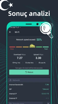 SpeedTest Master ile dijital dünyanın hızını parmaklarınızın ucunda hissedin. İnternet bağlantınızın gerçek performansını merak mı ediyorsunuz? İster 2G, 3G, 4G, 5G hücresel ağlarda, ister DSL veya ADSL gibi geniş bant bağlantılarda, hatta evinizdeki Wi-Fi ağınızda olsun, SpeedTest Master size en doğru ve kapsamlı ölçümleri sunar. İndirme ve yükleme hızlarınızı, ayrıca gecikme (ping) sürenizi anında belirleyerek bağlantınızın kapasitesini gözler önüne serer ve ağ kararlılığınızı titreme (jitter) testi ile derinlemesine analiz eder.