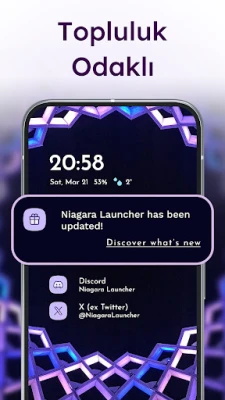 Modern ve sade tasarımıyla Niagara Launcher, ekranınızdaki dağınıklığı ortadan kaldırarak zihinsel odağınızı güçlendirir. Reklamsız yapısı sayesinde kesintisiz bir deneyim sunarken, sadece birkaç megabaytlık boyutuyla cihazınızda yıldırım hızında ve sorunsuz bir performans sergiler. Android'in yeni Material You temalandırma desteğiyle, ana ekranınız duvar kağıdınıza mükemmel uyum sağlayarak tamamen size özel, büyüleyici bir görünüm kazanır. Entegre simge paketleri, font seçenekleri ve duvar kağıtları ile kişiselleştirme özgürlüğünüzü keşfedin. Sürekli aktif geliştirme süreci ve destekleyici topluluğu sayesinde, Niagara Launcher ile elde ettiğiniz deneyim her zaman güncel, yenilikçi ve üst düzey kalacaktır.