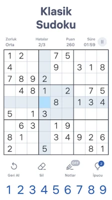 İster ilk defa bir sudoku bulmacasıyla tanışın, ister yılların deneyimine sahip bir usta olun, Sudoku.com size özel bir zorluk seviyesi sunar. Hızlı başlangıçlar için "kolay" ve "orta" seviyeleri tercih ederek temel prensipleri kavrayabilir, "zor", "uzman" ve "dev" seçenekleriyle ise zihninizi gerçek anlamda sınırlara taşıyabilirsiniz. Uygulama, her hamlenizde size yardımcı olacak akıllı ipuçları, yinelenen sayıları vurgulama ve hataları anında belirten otomatik kontrol gibi pratik özelliklerle donatılmıştır. Kağıt üzerinde not alır gibi hücrelere işaretleme yapmanızı sağlayan not alma özelliği sayesinde karmaşık durumların üstesinden gelmek de çocuk oyuncağı.